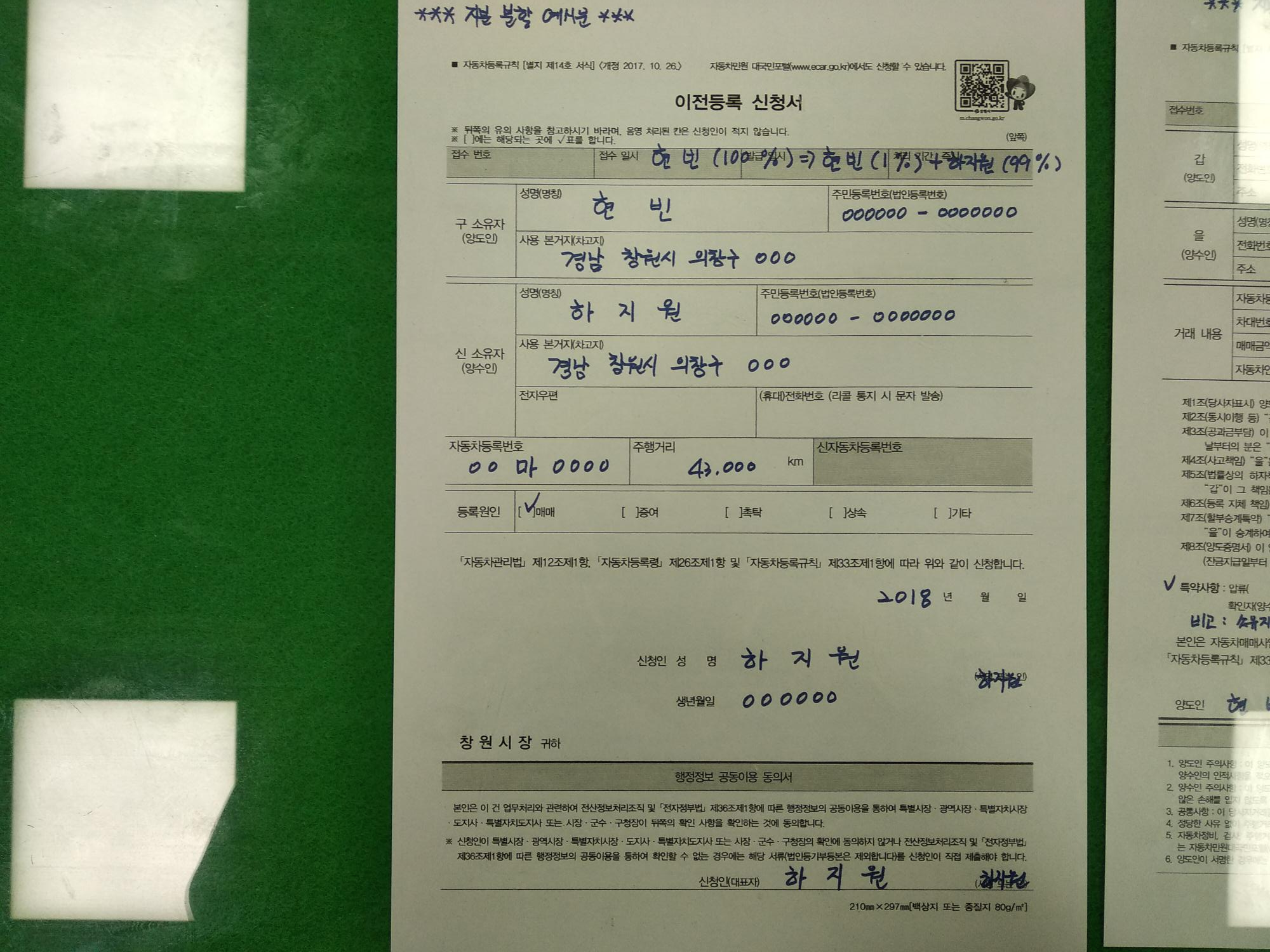 창원에서 중고 자동차 등록하는 것을 간단히 보여 드리겠습니다.