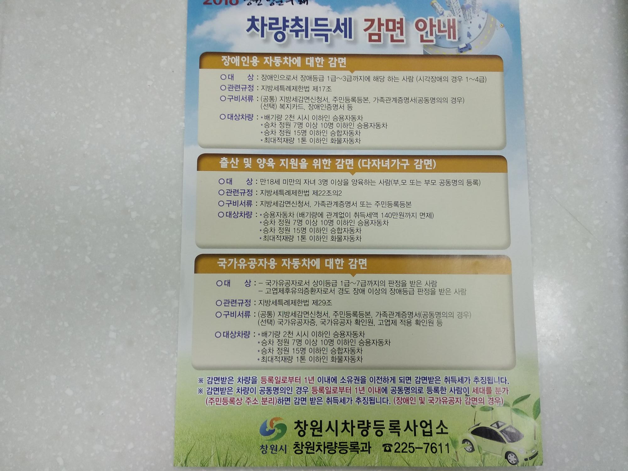 차량취득세 감면 안내입니다.
