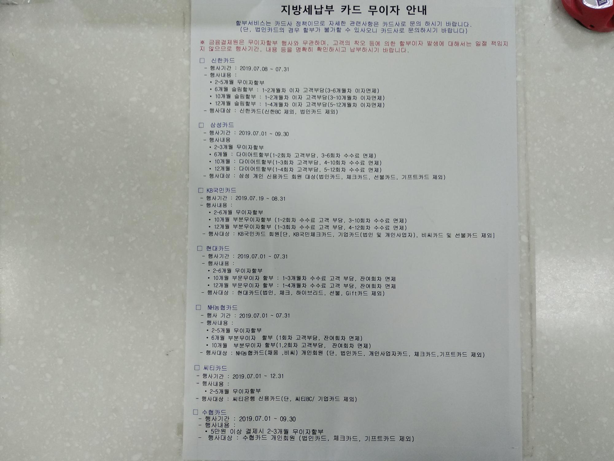 지방세 납부 카드 안내입니다.