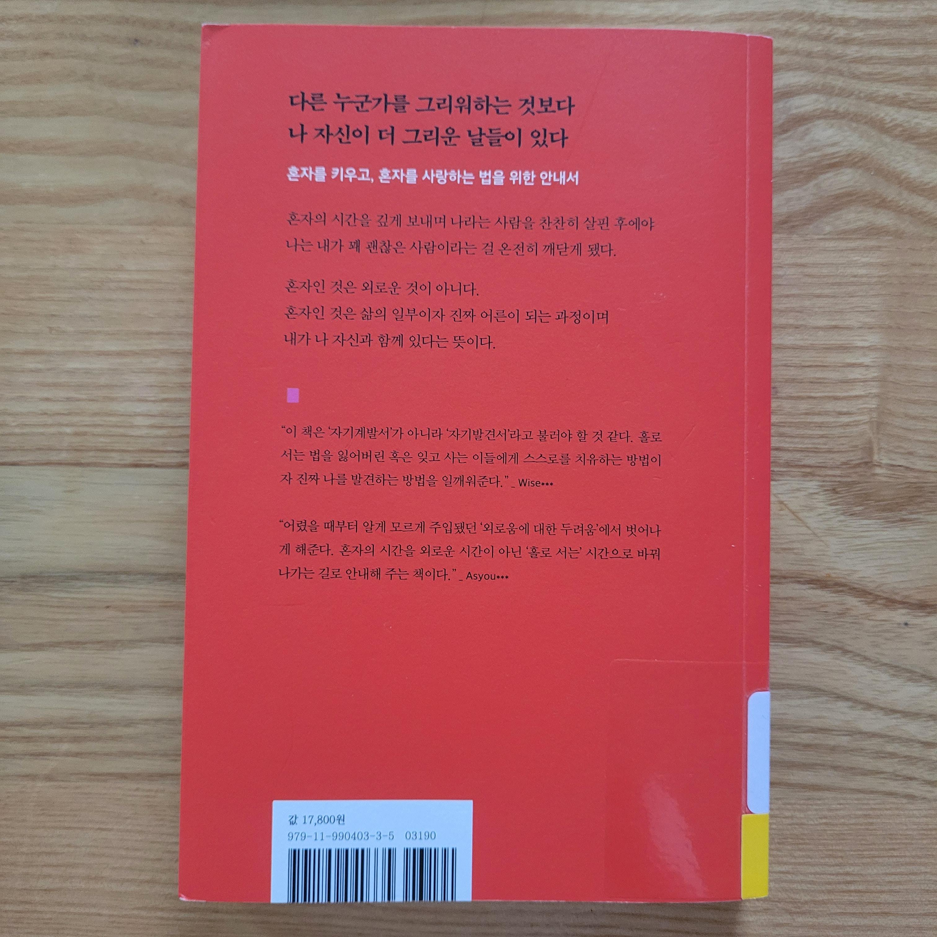 혼자라고 외로운 건 아니다. 나를 응원하고 사랑해 줄 사람은 나 자신 밖에 없다.