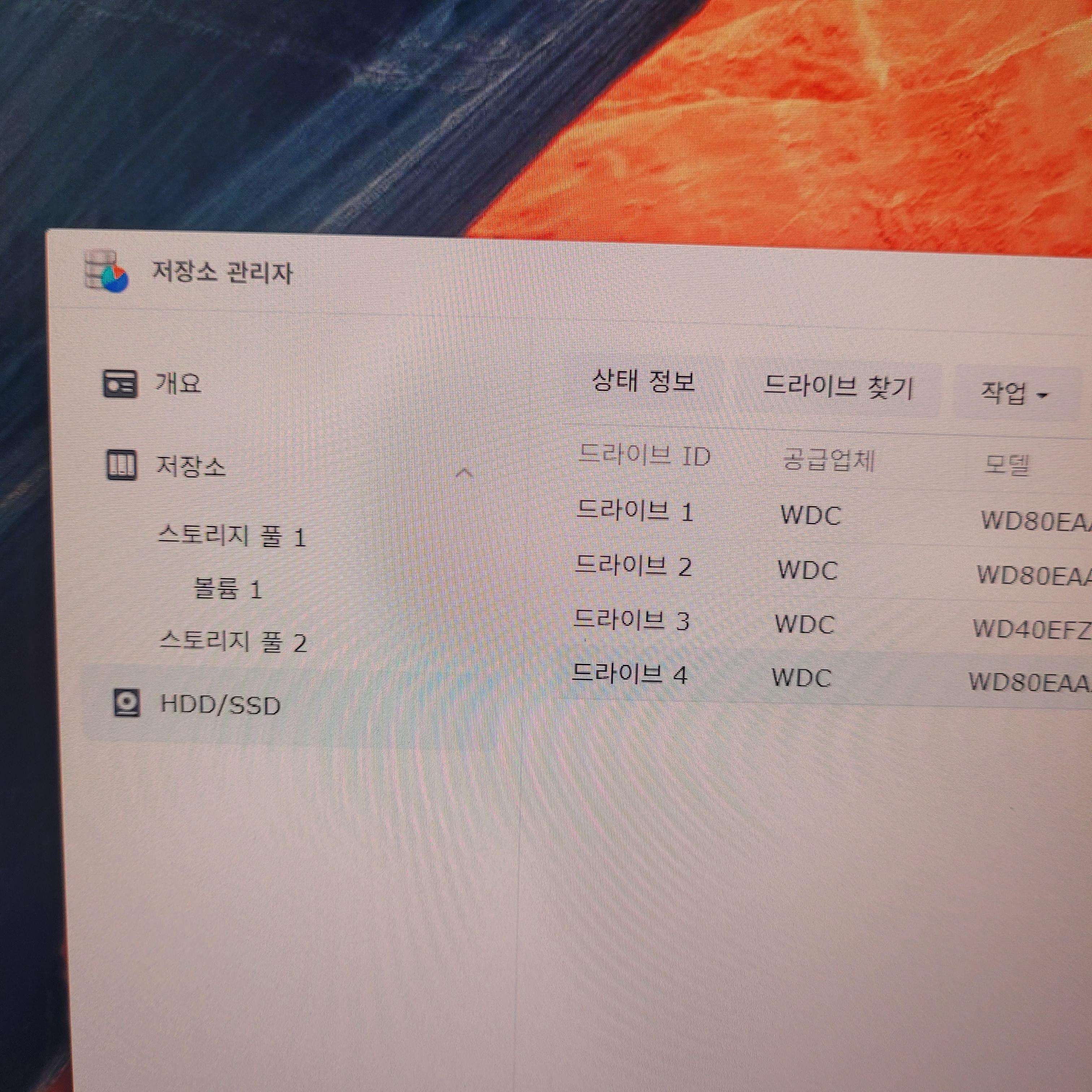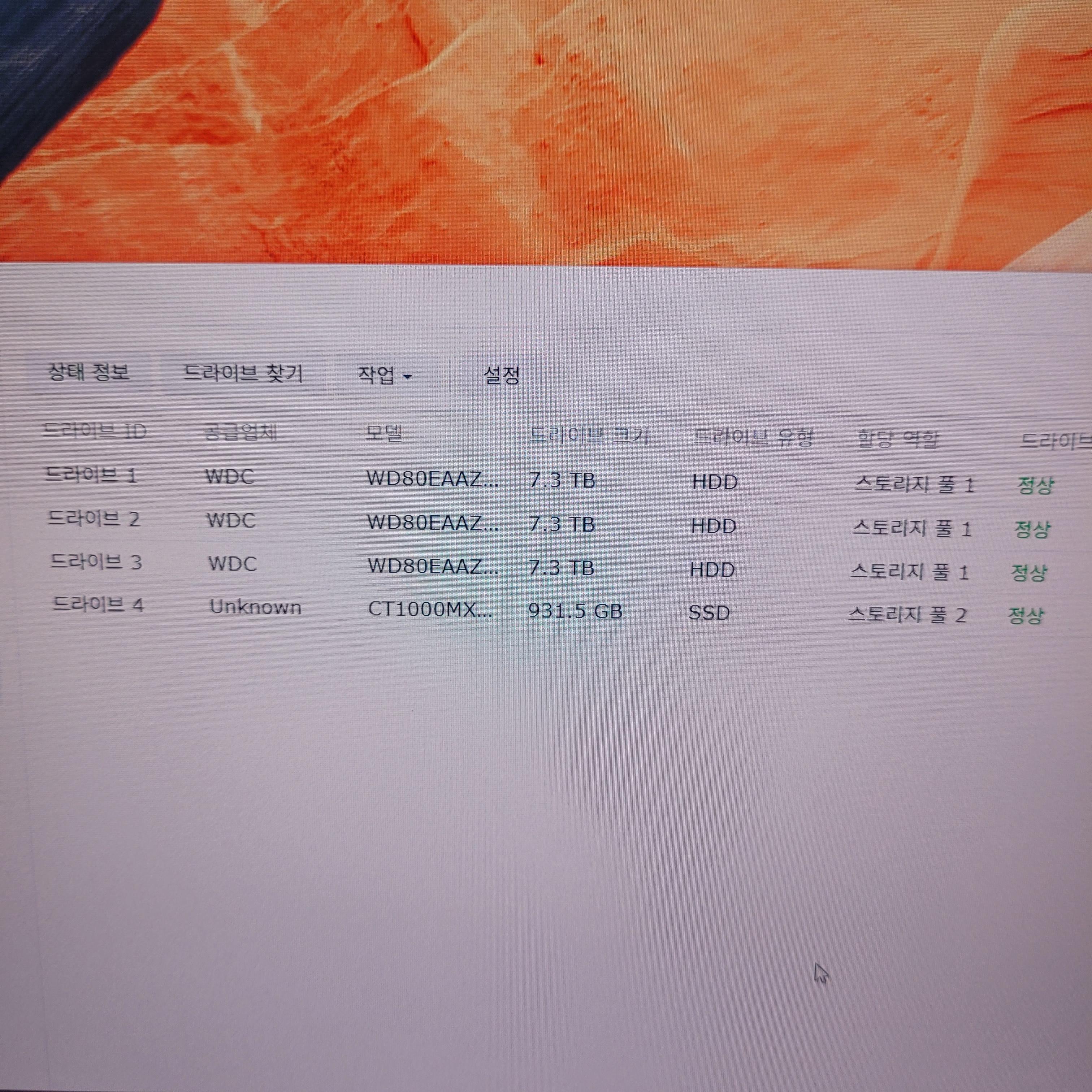 4번 드라이브는 1tb SSD를 사용하고 있었는데, 빈 곳이 없어 임시로 탈거하고 새 8TB HDD로 바꾸고 장착 후 전원을 넣었더니 계속 신호음이 발생합니다. 그래서 음소거를 했습니다.