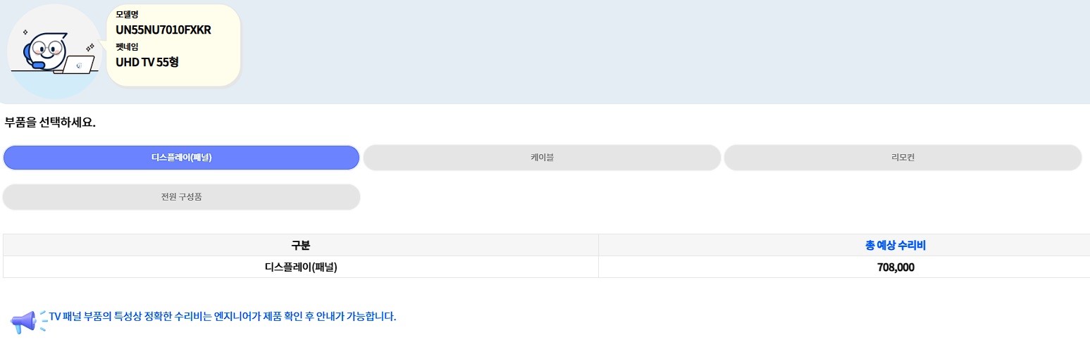 [TV] 삼성전자서비스에서 예상 소모품/수리비 확인